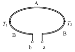 контурі. A, B - два провідники, T1 та T2 - температури у місцях їх з’єднання