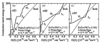 утримуються в PbTe шарі. При концентрації 7,3% Eu, зона провідності зміщення