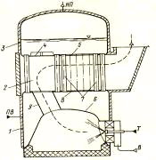 вентилятор; 7-топка; 8 - клапан нижнего продувания; 9 - водяной коллектор