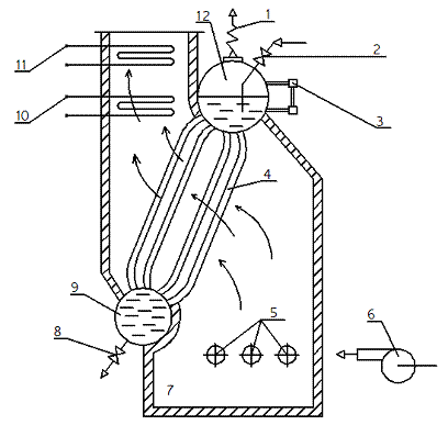 (барабан); 10-экономайзер; 11-пароперегреватель; 12-пароводянной коллектор