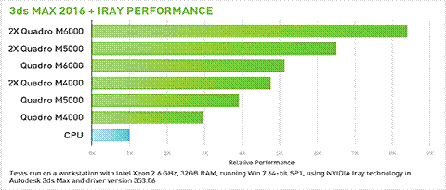 Рисунок 11. Відносна продуктивність роботи графічної карти в ПЗ AUTODESK 3ds MAX [13]