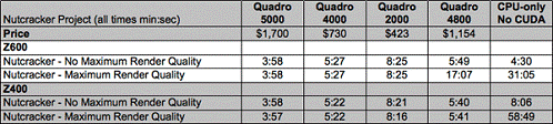 Відзначимо чотирнадцяти кратне зростання продуктивності професійної відеокарти Quadro +5000 на робочій станції HP Z400. [14]