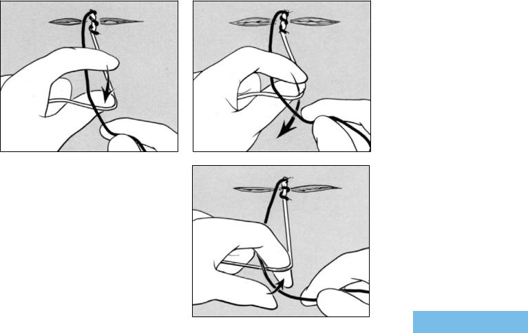 through the suture loop. As the free suture end passes through the loop, it is regrasped by the right hand to withdraw it through the suture loop.