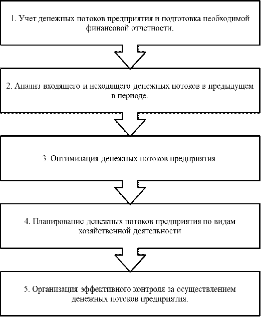 Организация управления денежными потоками предусматривает последовательное осуществление следующих этапов (рис. 3).