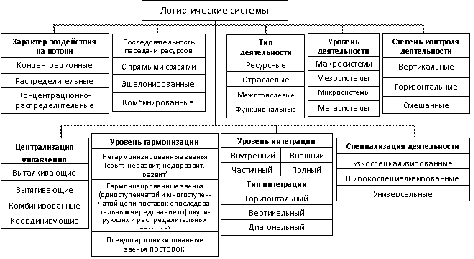 Классификация на данной схеме приведена в соответствии с выбранными и уже сложившимися характерными логистическими признаками классификации, например, следующими: характер воздействия на потоки, последовательность передачи ресурсов, уровень, типы, специализация и степени контроля деятельности, централизации управления, уровень и типы интеграции, централизации и гармонизации звеньев цепей поставок.