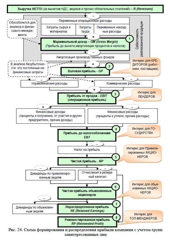 Рис. 3. Схема формирования и распределения прибыли компании с учётом групп заинтересованных лиц