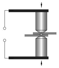 Сжатие деталей, вызывающее пластическую деформацию микронеровностей в цепочке электрод-деталь-деталь-электрод.
