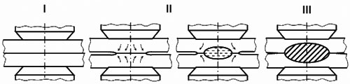Весь процесс точечной сварки можно условно разделить на 3 этапа.