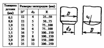 зазорам между деталями после сварки. Размеры рабочей поверхности электродов