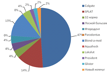 определено текущее положение зубной пасты SPLAT на рынке, которое характеризуется