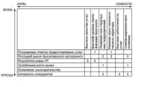 Рис.1.Матрица SWOT-анализа для сегмента компании