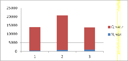 Вывод: в крупных предприятиях за счет увеличения персонала, увеличивается выпускаемая продукция.