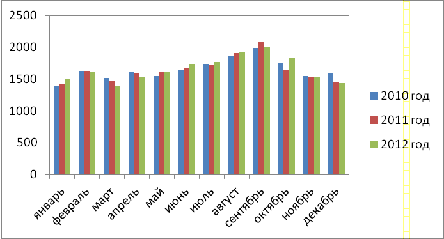 Таблица 2.1 - среднесуточный объем перевозок грузов ТП по годам, т