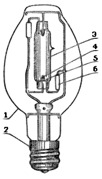 Устройство лампы ДРЛ: 1 - колба; 2 - цоколь; 3 -