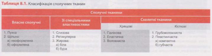 Класифікація сполучних тканин ґрунтується на особливостях складу і співвідношення клітинних елементів, організації волокон та фізико-хімічних властивостях основної речовини