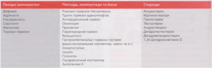 Згідно з біохімічною класифікацією розрізняю наступні групи гормонів: