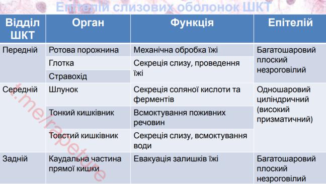 Епітелій слизових оболонок Шлунково-кишкового тракту