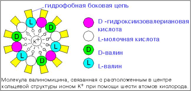 Валиномицин переносит ионы калия по его электрохимическому градиенту;