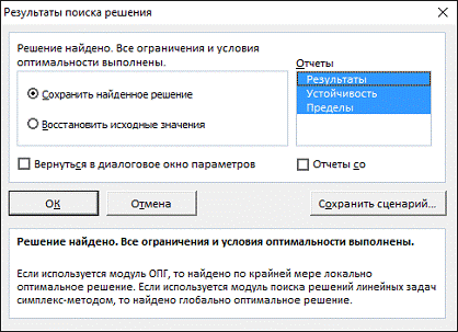 В столбце Ограничения в ячейки F4:F6 занесены формулы для расчеты левых частей ограничений (2).