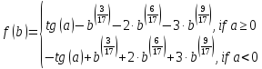 44 F = (-tan(a) + pow(b, 3.0/17) + 2 * pow(b, 6.0 / 17) + 3 * pow(b, 9.0 /