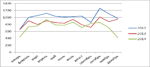 Рисунок 1 - Количество оформленных ДТ 2012-2014гг.