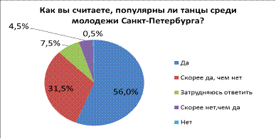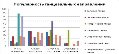 популярны среди молодежи, еще 31, 5 % отметили, что танцы скорее популярны