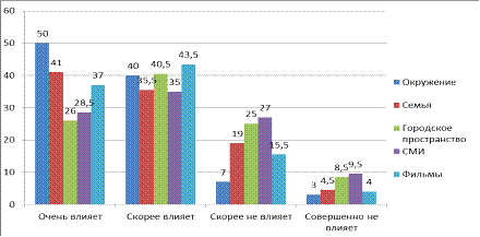 результатам опроса оказываются художественные фильмы. Наименьшее влияние
