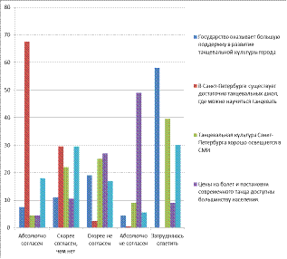 возможности» и нет желания танцевать в принципе у 14,5 % респондентов. Эти