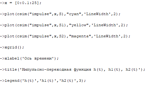4. Построить график импульсно-переходной функции w(t) (csim).