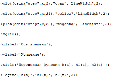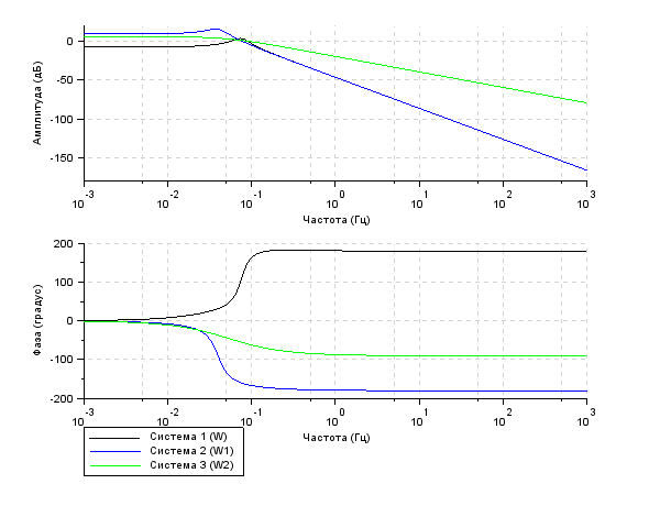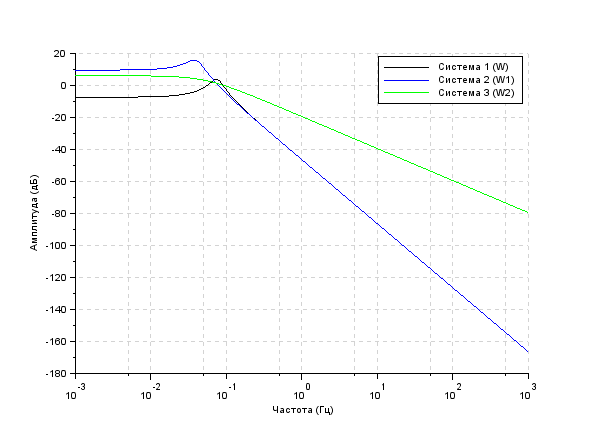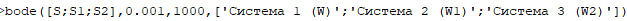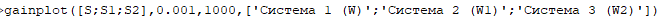 Построить вместе графики следующих функций для W(s), W1(s) и W2(s) (plot):