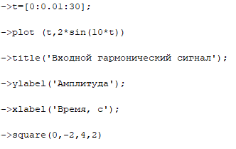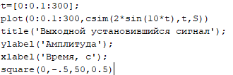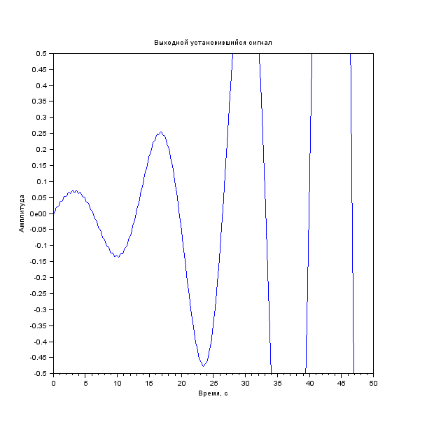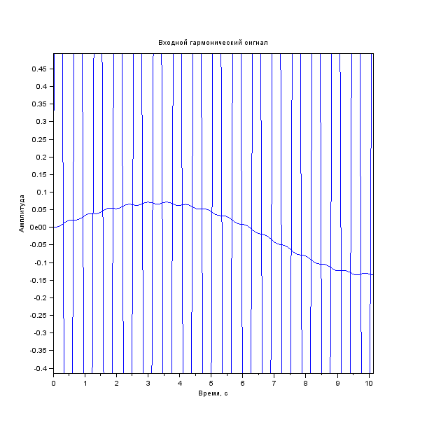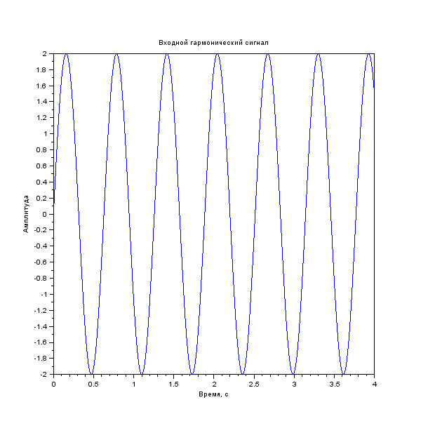 Выходной сигнал при подаче на систему синусоидального сигнала 2sin(10t)
