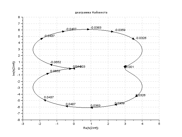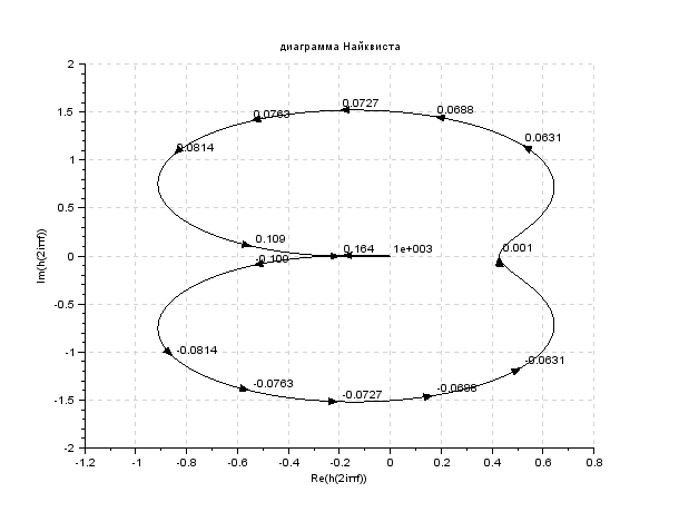 Исходя из графика, движение вектора не удовлетворяет условию огибания начала координат, значит система неустойчива.