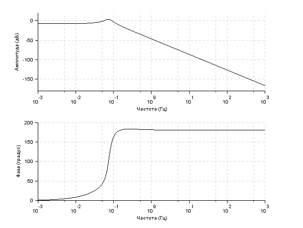 ОПР: Логарифмическая амплитудно-фазовая частотная характеристика (ЛАФЧХ или диаграмма Боде) -- представление частотного отклика линейной стационарной системы в логарифмическом масштабе. ЛАФЧХ строится в виде двух графиков: логарифмической амплитудно-частотной характеристики и фазо-частотной характеристики