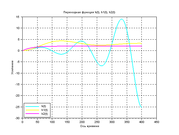 Как можно видеть из корневого критерия устойчивости (п.12), ни один из корней нашей системы не равен нулю. Это означает, что наша система с заданными нами коэффициентами неустойчива. Для того, чтобы система стала устойчивой, необходимо подобрать коэффициенты так, чтобы корни из правой части лежали на вещественной оси.