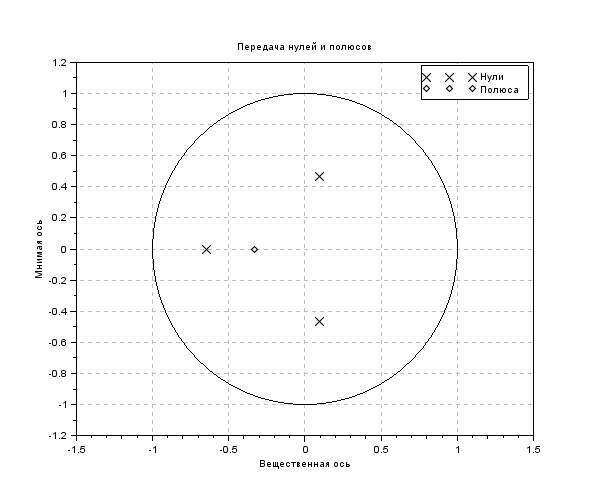 Система неустойчива, так как есть корни справа от вещественной оси.