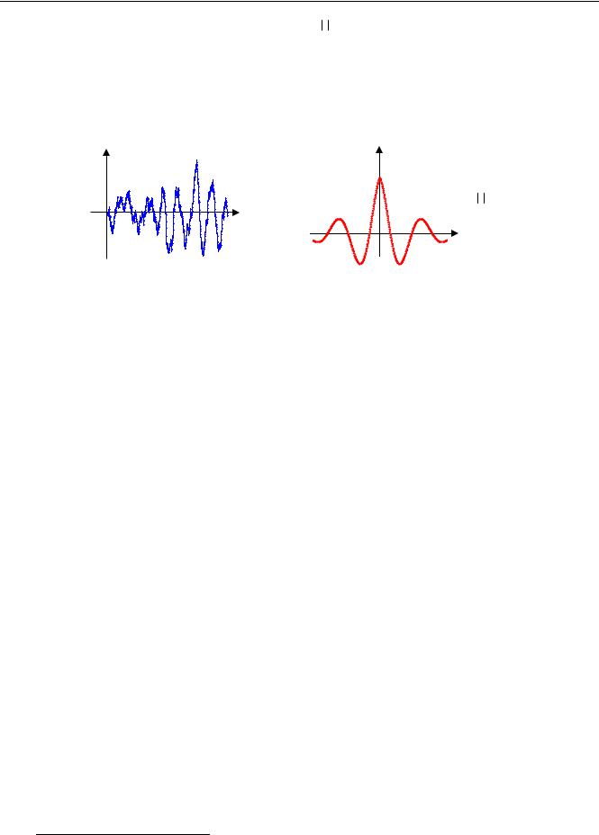 Корреляционная функция не всегда положительна. На следующих рисунках показано изменение ординаты поверхности морского волнения и корреляционная функция этого сигнала (одна из теоретических моделей):