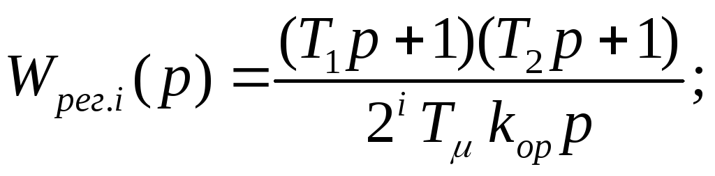 Передаточная функция регулятора внутреннего контура САР или одноконтурной системы, настроенной по модульному оптимуму, может быть получена по обобщённой формуле (3.8)