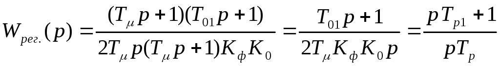 где Tp1=T01 – постоянная времени обратной связи регулятора;