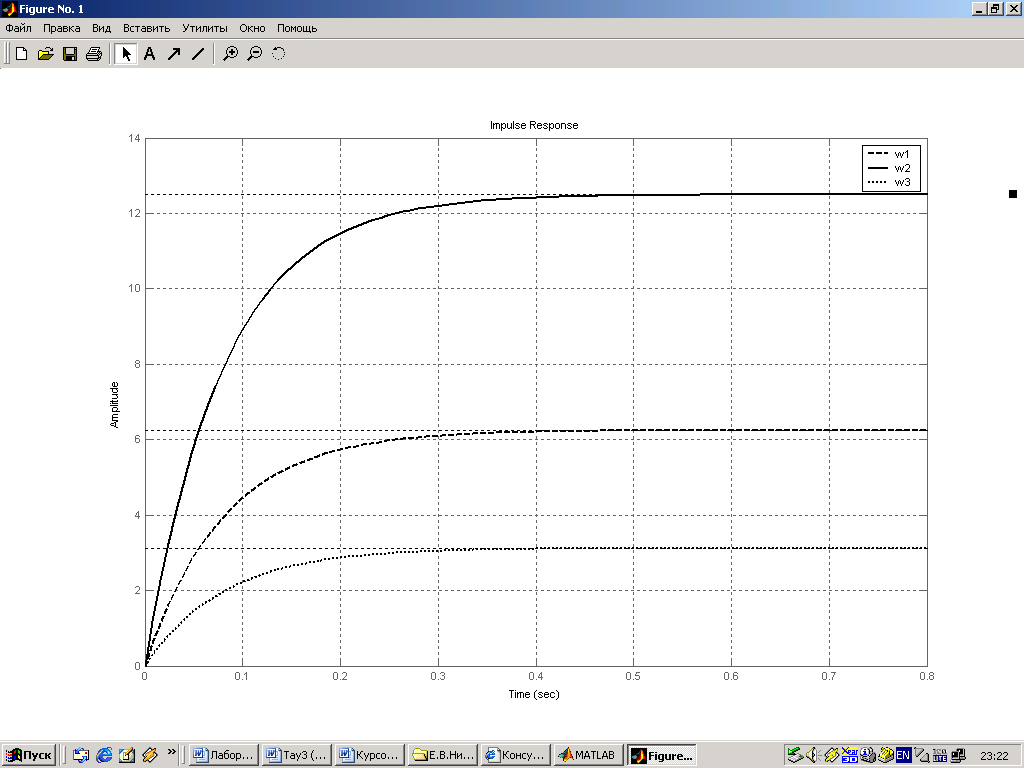 Создадим LTI-объекты с именами w1, w2, w3, для этого выполним: