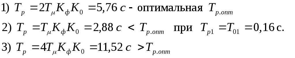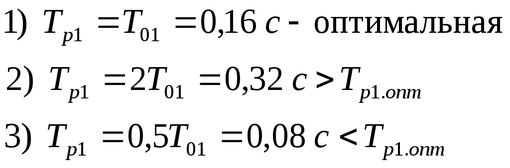 Рис. 4.8 Импульсная переходная функция разомкнутой САР при изменении постоянной времени интегрирования регулятора