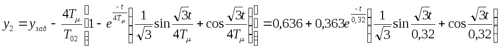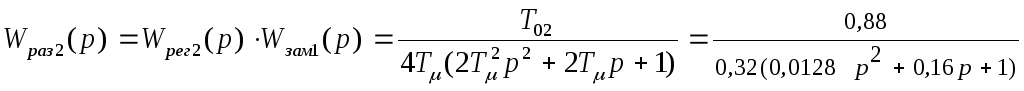 Переходная функция системы при возмущающем воздействии, когда выходной величиной является выходная величина внутреннего контура, имеет вид: