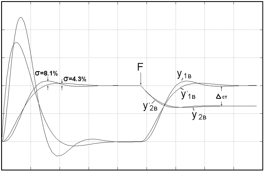 Рис. 5.8 Кривые переходного процесса при возмущающем