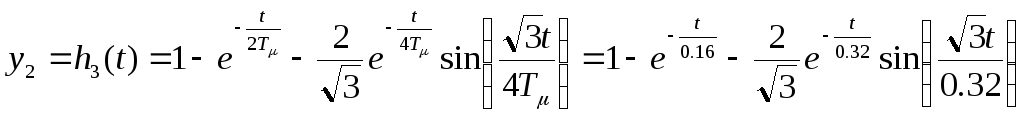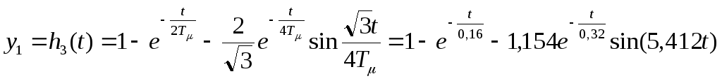 Переходная функция при единичном управляющем воздействии, когда выходной величиной является выходная величина внешнего контура, имеет следующий вид: