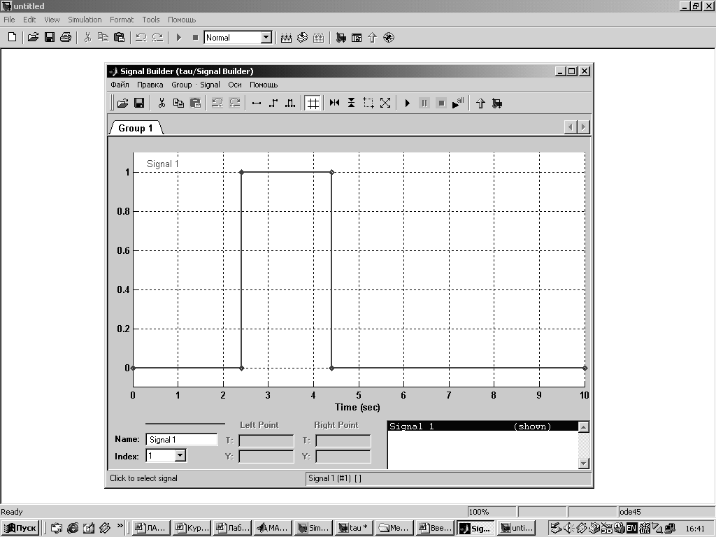Рис.5.4 Параметры блока Signal Builder