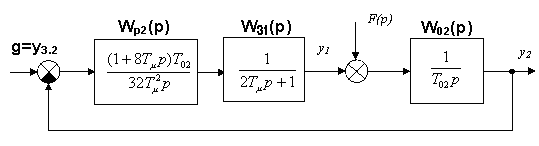 Внутренний замкнутый контур имеет такую же структуру и передаточную функцию как и в однократно-интегрирующей статической системе, настроенной по модульному оптимуму. Следовательно, внутренний замкнутый контур может быть аппроксимирован апериодическим звеном первого порядка с передаточной функцией: