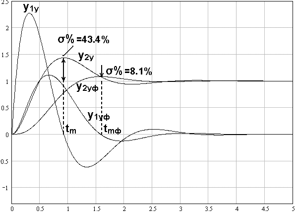 Известно, что при постройке САР по симметричному оптимуму переходный процесс для выходной величины y2 при скачке задающего воздействия g=yз.2. характеризуется значительным перерегулированием, составляющим σ%=43,4%