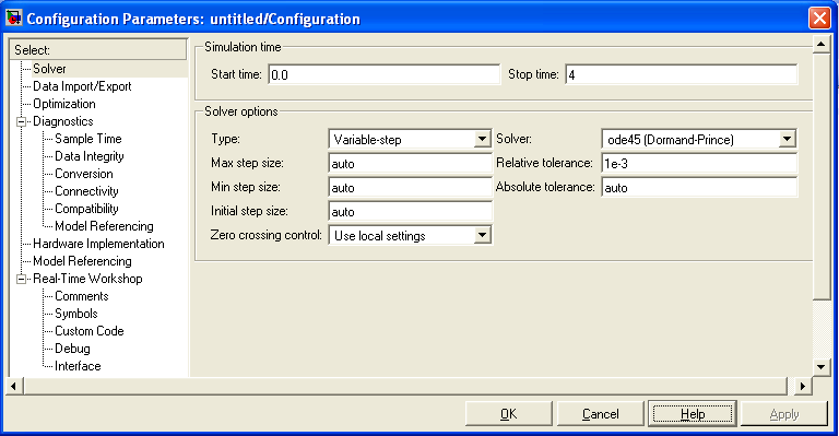Перед выполнением расчетов необходимо предварительно задать параметры расчета. Задание параметров расчета выполняется в панели управления меню Simulation/Configuration Parameters.