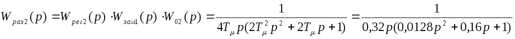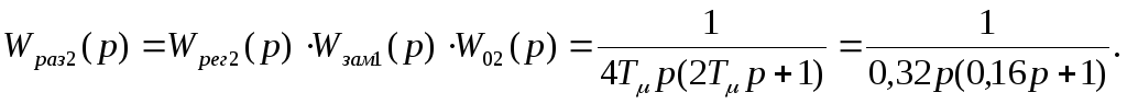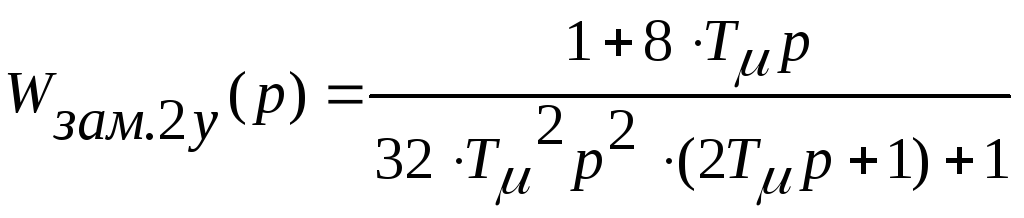 Необходимо исследовать и другой вариант настройки регулятора, обеспечивающей минимальный показатель колебательности. В этом случае передаточная функция регулятора внешнего контура имеет вид