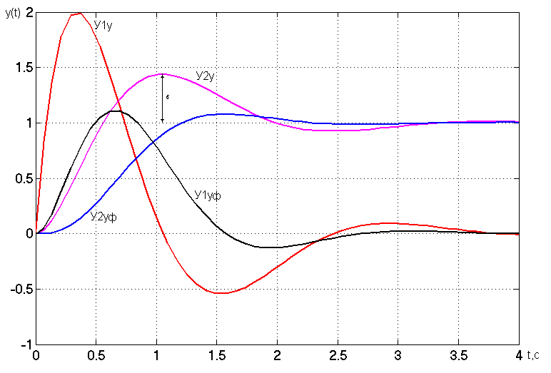 Рис. 6.6 Переходные функции при управляющем воздействии