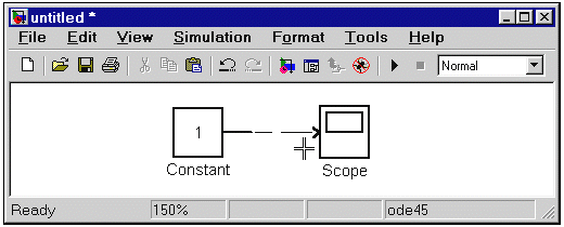 Любой блок модели можно переместить, выделив его, и передвинув, держа нажатой левую клавишу «мыши». Если ко входам и выходам блока подведены соединительные линии, то они не разрываются, а лишь сокращаются или увеличиваются в длине. В соединение можно также вставить блок, имеющий один вход и один выход. Для этого его нужно расположить в требуемом месте соединительной линии.